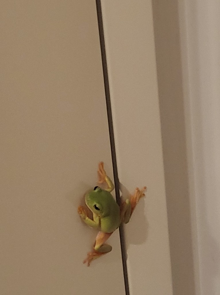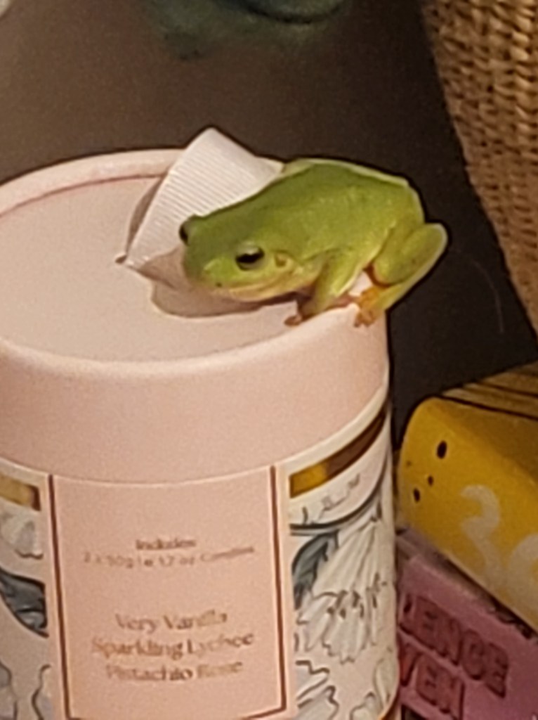 Wednesday night I went for a shower and this beautiful green tree frog jumped out. I followed him to my room. He was like spider man. I eventually caught him with my new scarf and moved him safely outside. I now have a person house mate and a frog house mate. Very strange living with someone you don’t know when you have never done it before …luckily she goes out at night and me day..and she is a nice person.